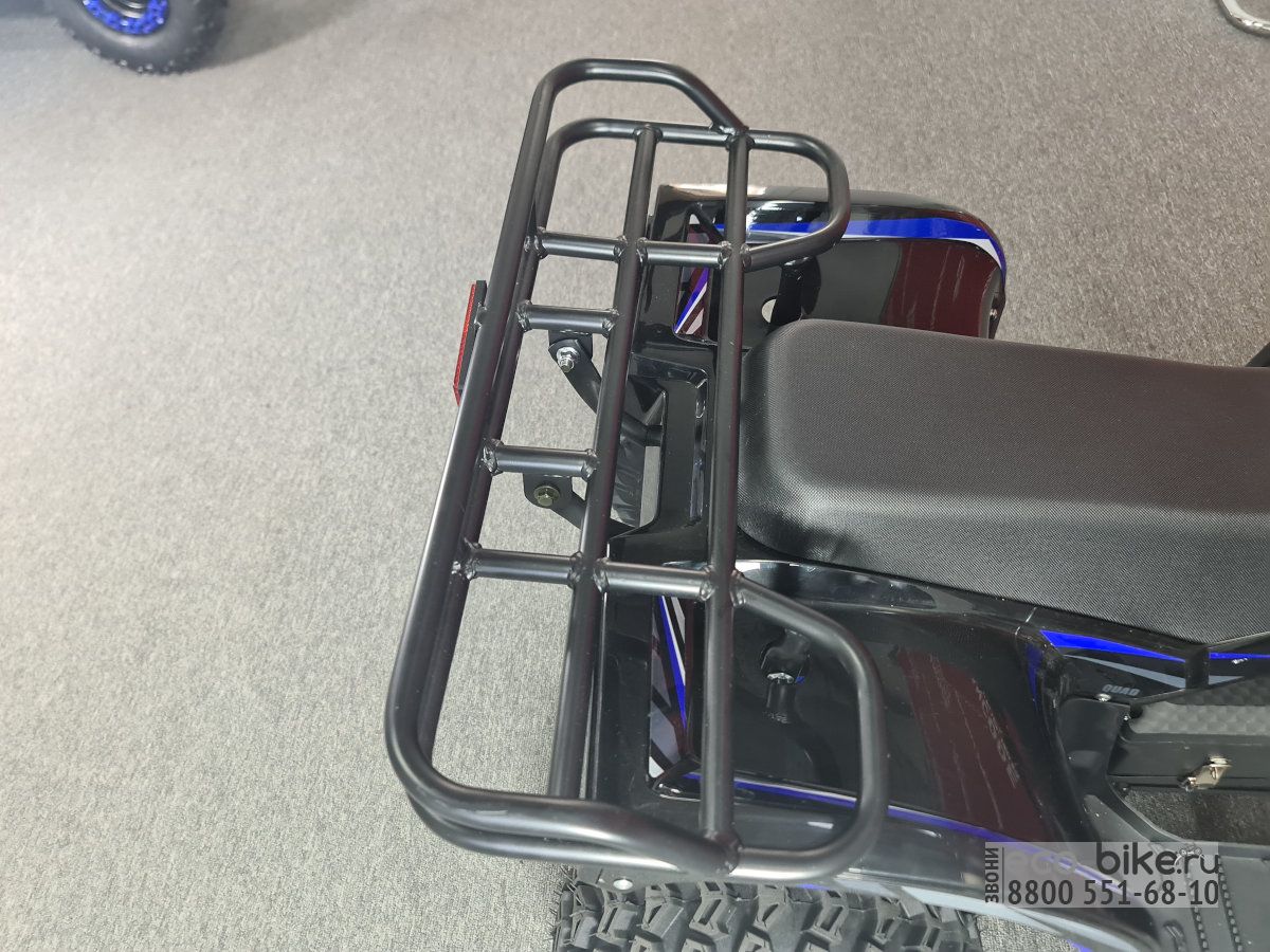 - Освещение: передняя фара, синие габаритные огни и задний стоп-сигнал для безопасного передвижения в любое время суток.