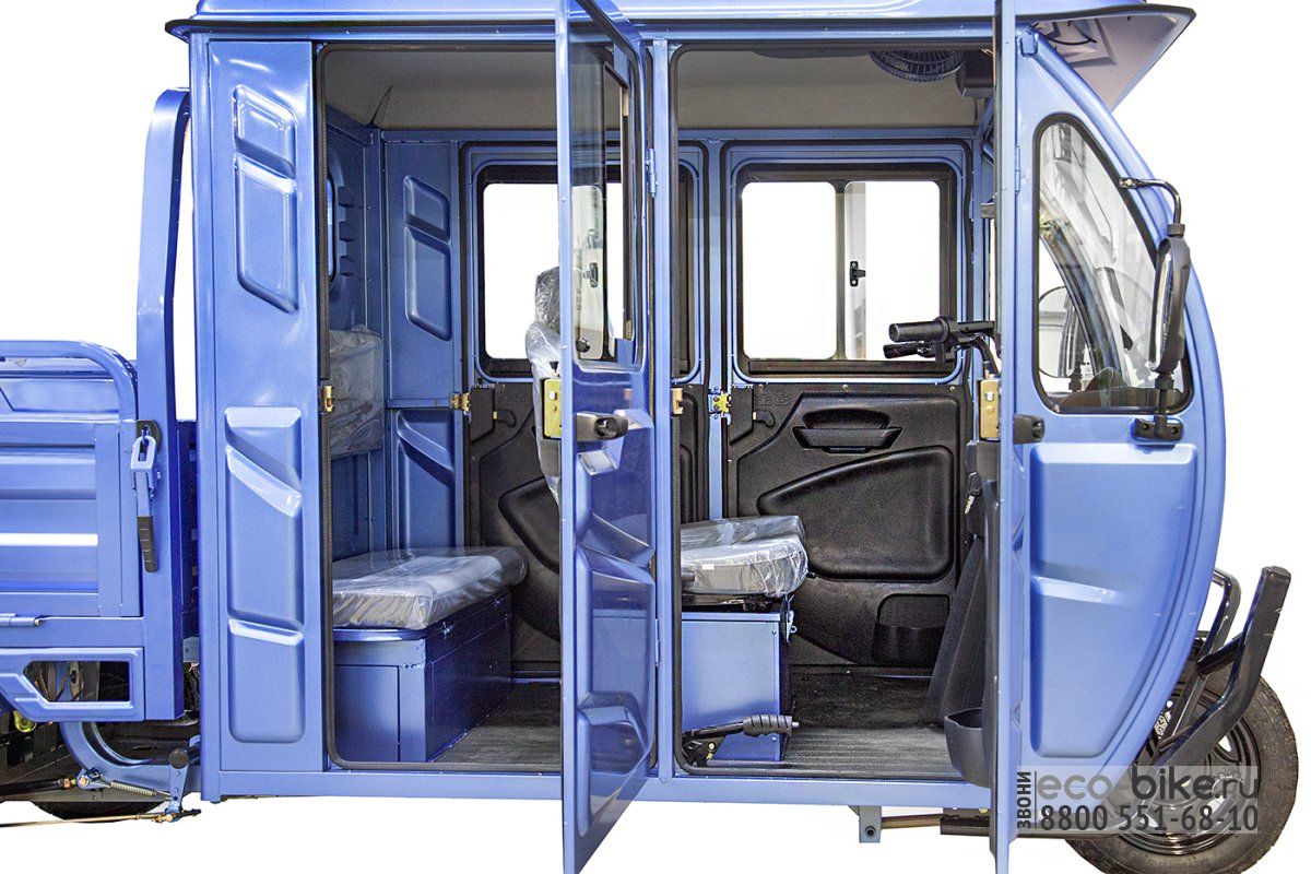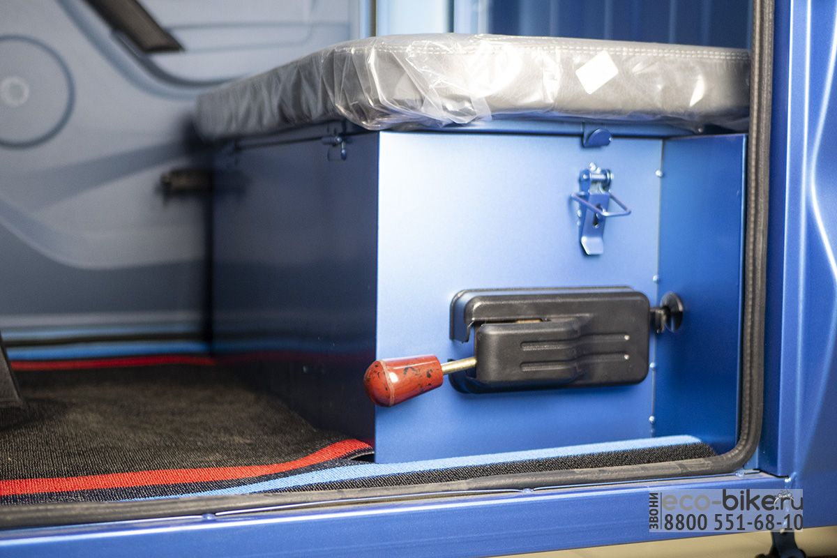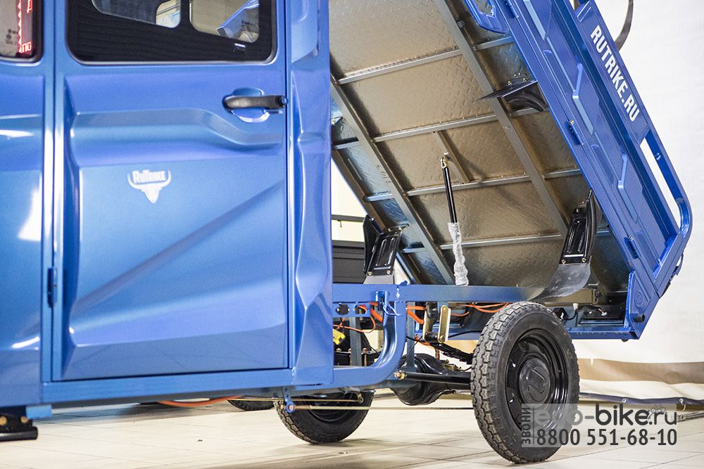 Электрический трицикл Rutrike Титан оснащен вместительным кузовом с гидравлическим подъемным механизмом, позволяющим быстро осуществлять погрузку-разгрузку.