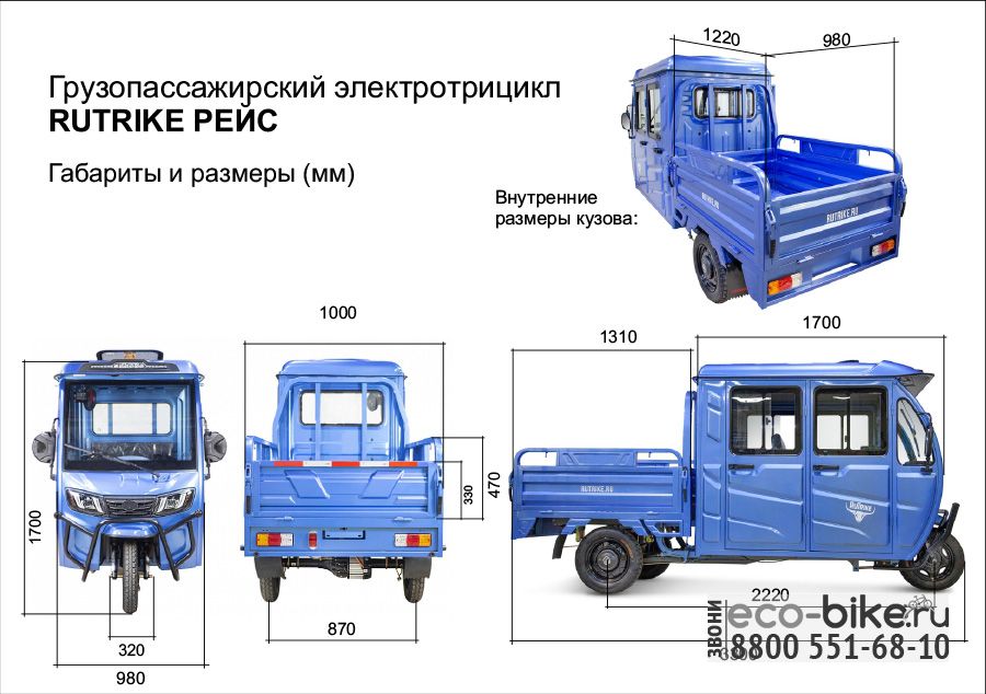 Размер грузового отсека (мм) Д x Ш x В:1300×1000×330мм