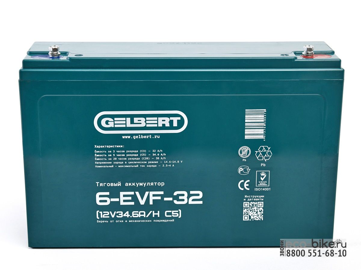 Описание на Тяговый аккумулятор Gelbert 6-EVF-32 (12V34.6A/H C5)